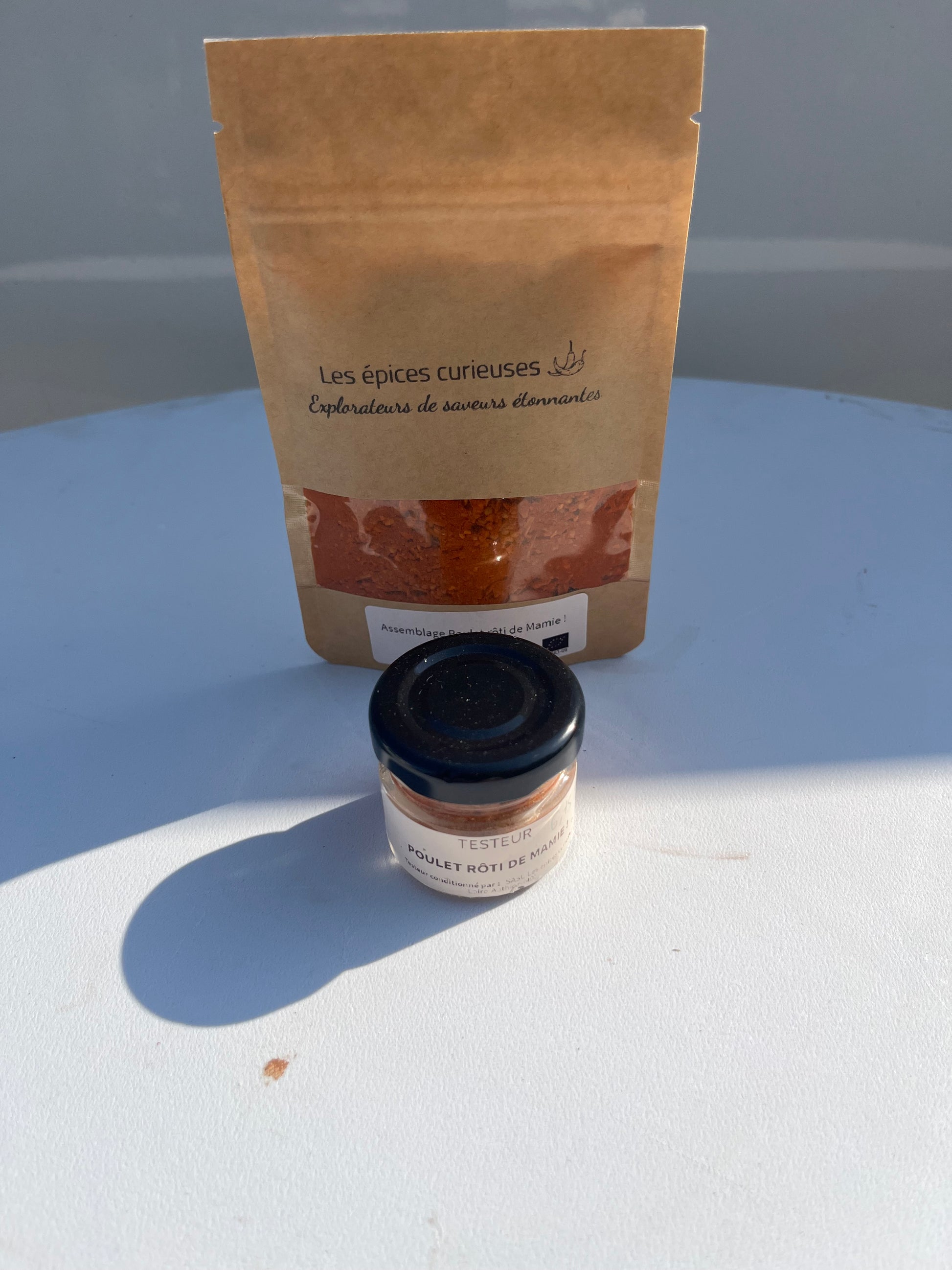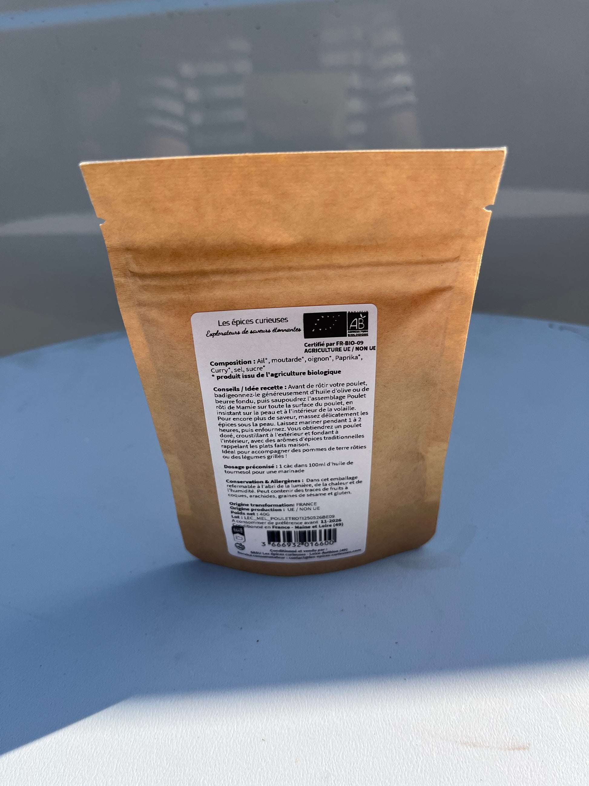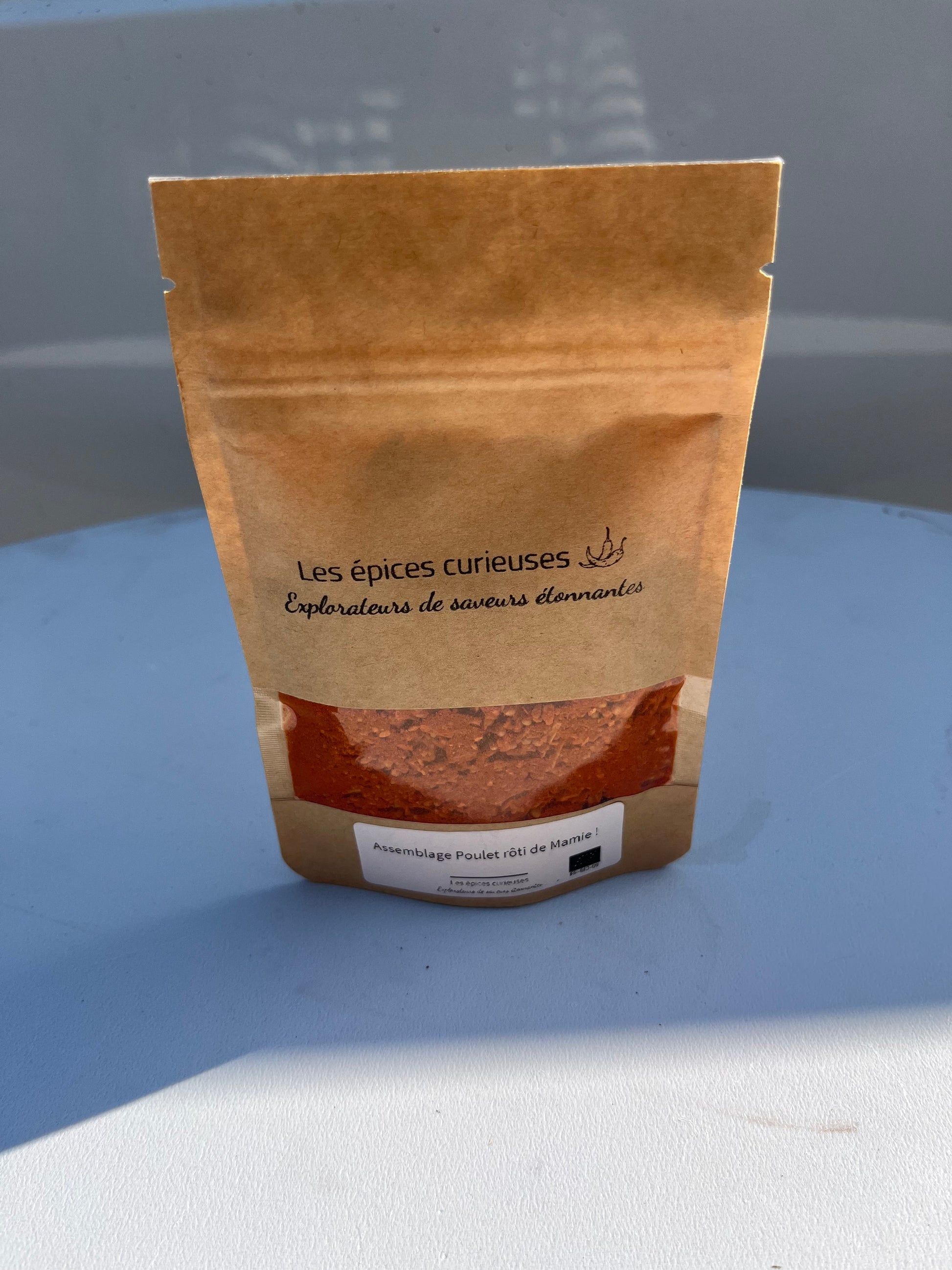 Savourez l’authenticité de l’Assemblage à poulet rôti de Mamie de chez Epicerie Papilles ! Transformez votre poulet en un plat succulent grâce à ce mélange d’épices unique. Parfait pour les amateurs de cuisine maison.