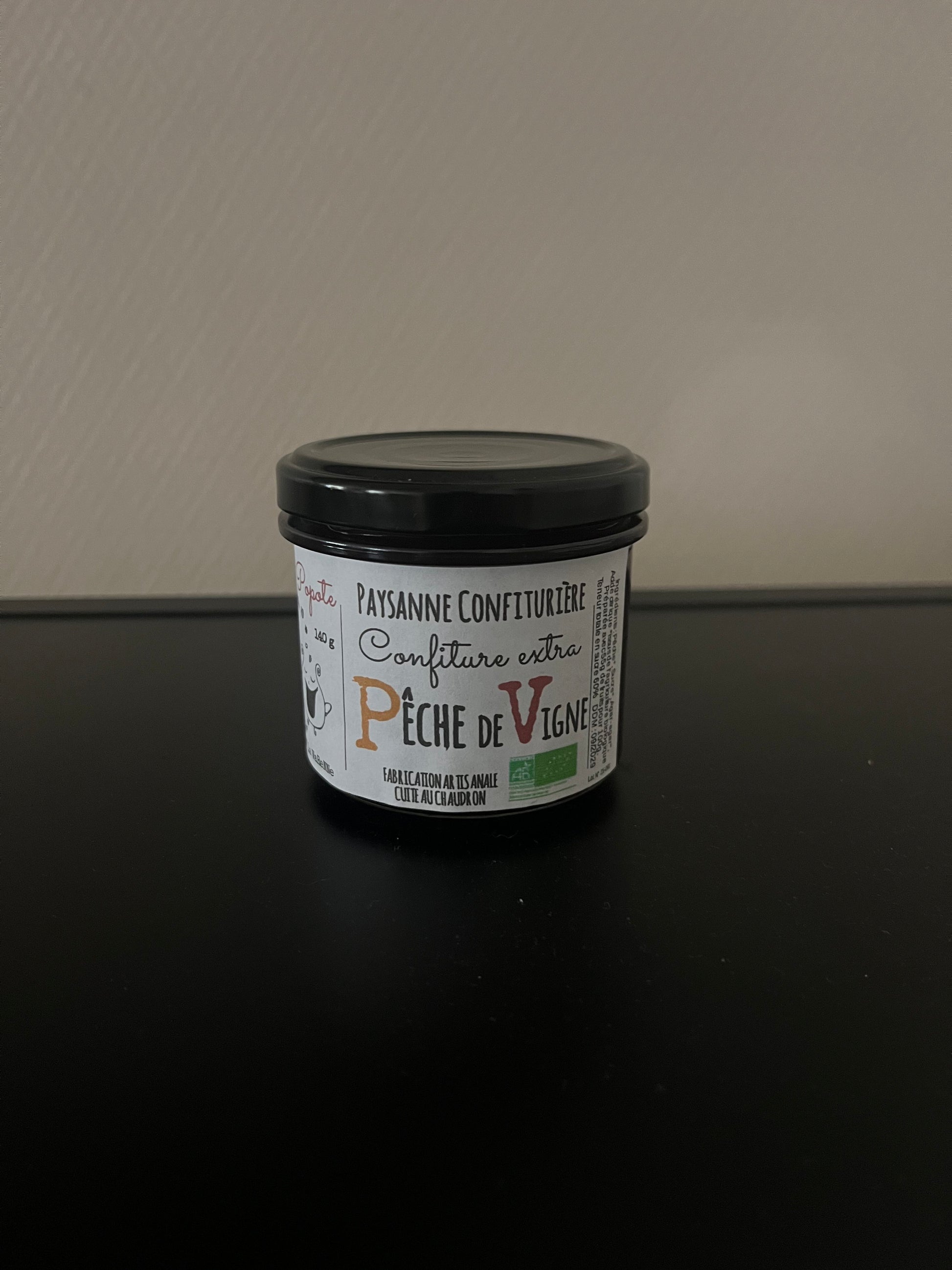 Confiture bio de pêche de vigne, fruitée et parfumée. Une saveur intense et naturelle pour des moments gourmands tout en douceur.