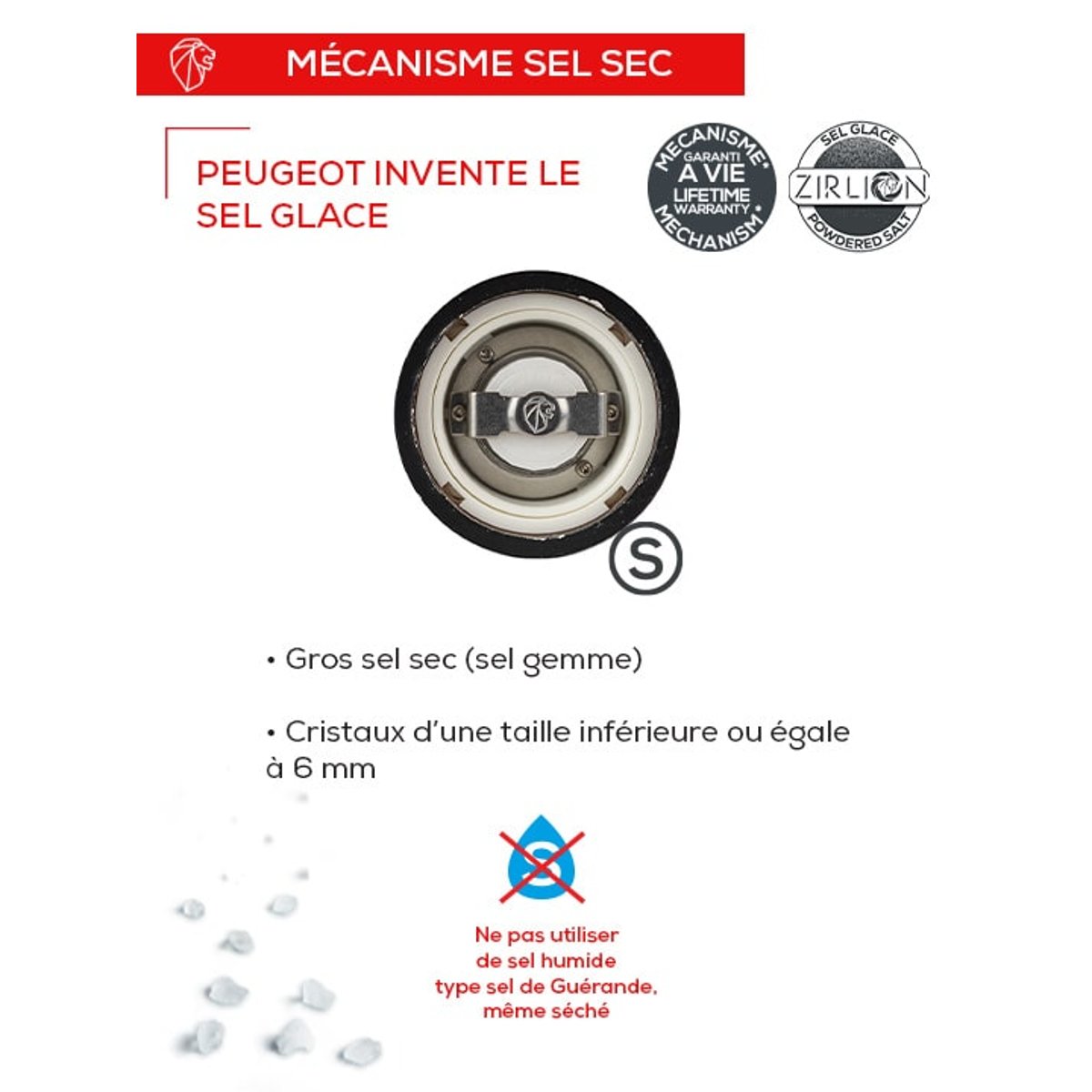 Le moulin Maestro sel de Peugeot, fabriqué en France, est un outil innovant pour les amateurs de sel. Son mécanisme en Zircone et le réglage u'Select permettent d'ajuster la mouture, du sel glace au sel croquant. Il possède un réservoir en verre dévissable, facile à remplir et compatible avec d'autres réservoirs. Le moulin est en bois PEFC, respectueux de l'environnement. Garantie 5 ans, il est uniquement destiné au sel sec, avec un entretien simple (chiffon sec, pas d'eau).