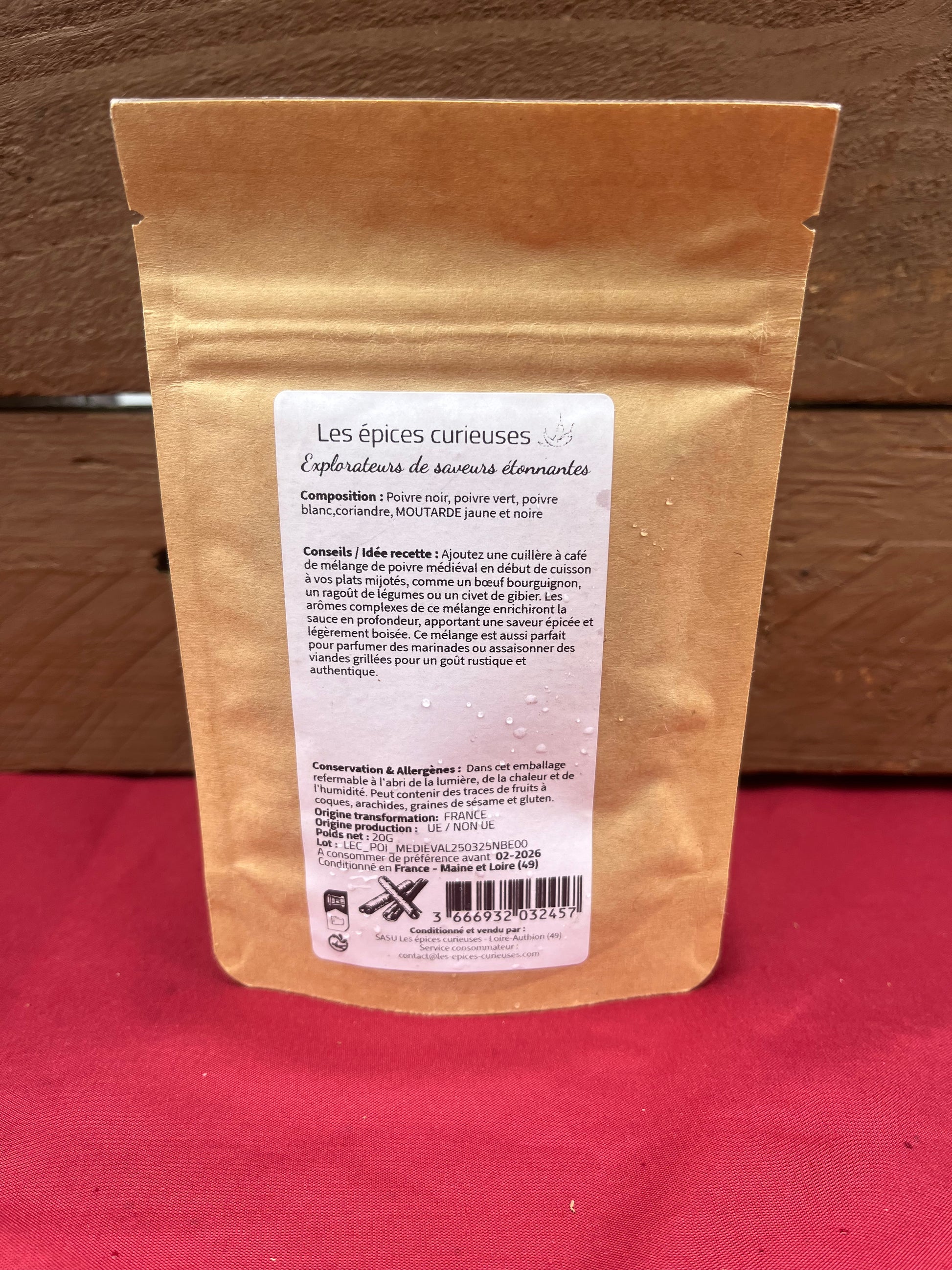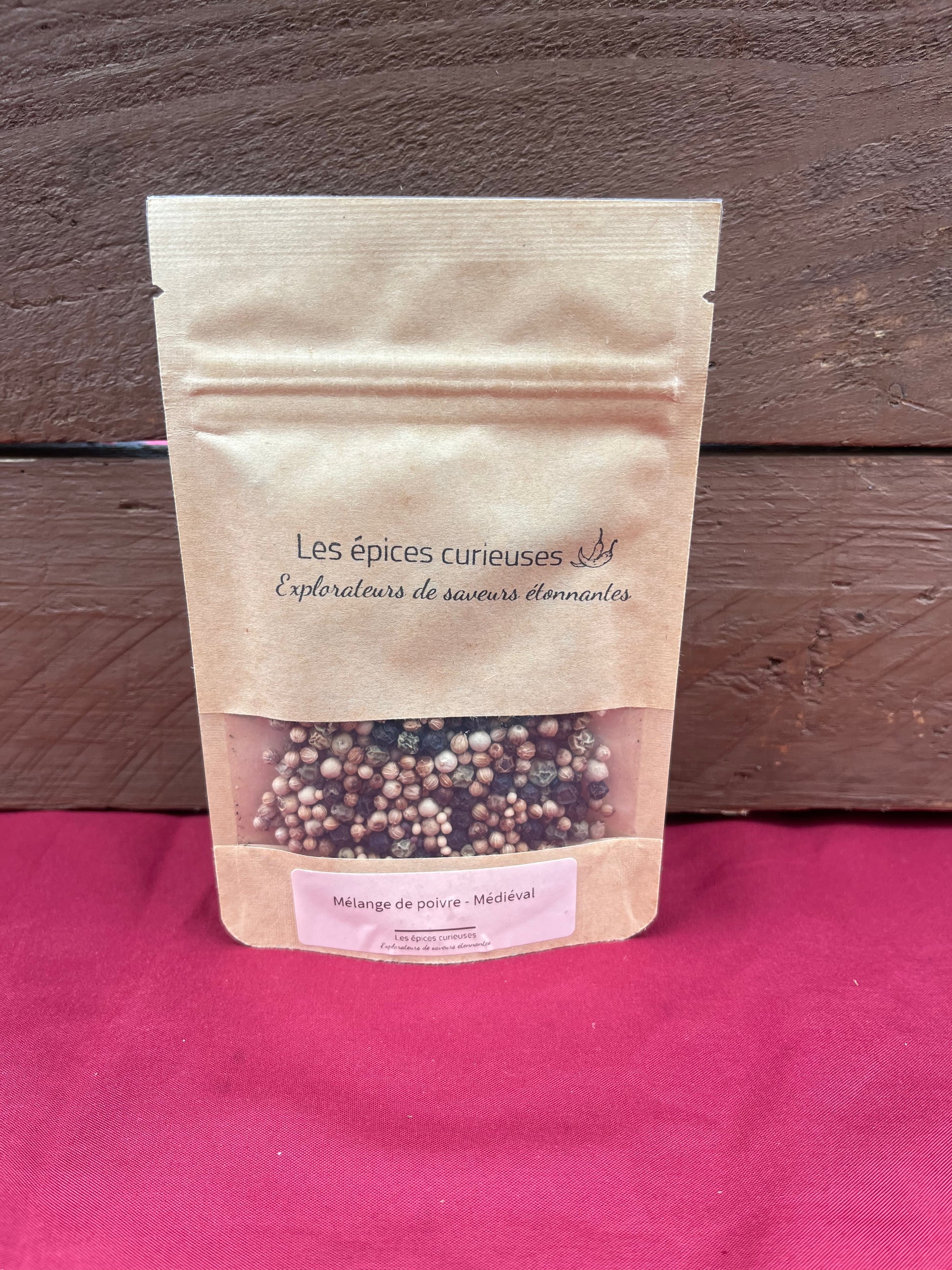 Découvrez le Poivre médiéval des Épices Curieuses. Unique, arômes intenses, idéal pour rehausser vos plats. Poivre médiéval d’excellente qualité à prix compétitif. Découvrez nos idées recette et nos conseils pour bien l’utiliser.