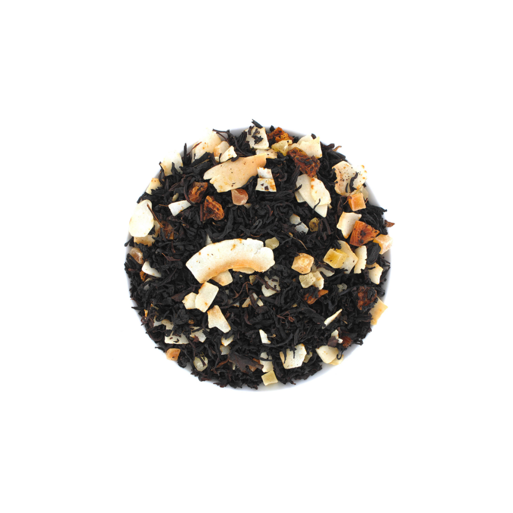 Découvrez un thé paré de ses plus beaux fruits exotiques avec des chips de coco, des cubes de papaye et d'ananas.