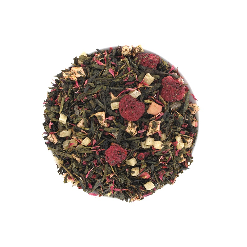 Ce thé rencontre un grand succès grâce à sa recette unique : une garniture crémeuse de gâteau, des framboises fraîches, le tout sur un thé vert sencha.